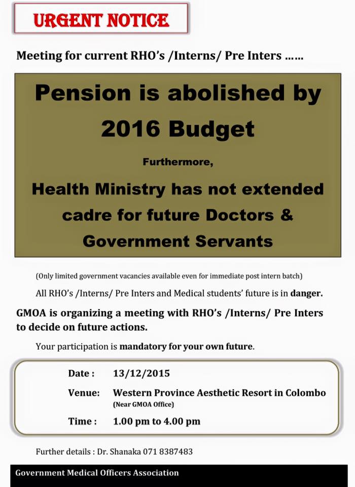 - The decision of the Next Trade Union Action will be decided according to the response during the next scheduled meeting on 18th December 2015 with His Excellency the President Maithripala Sirisena.